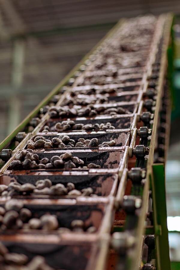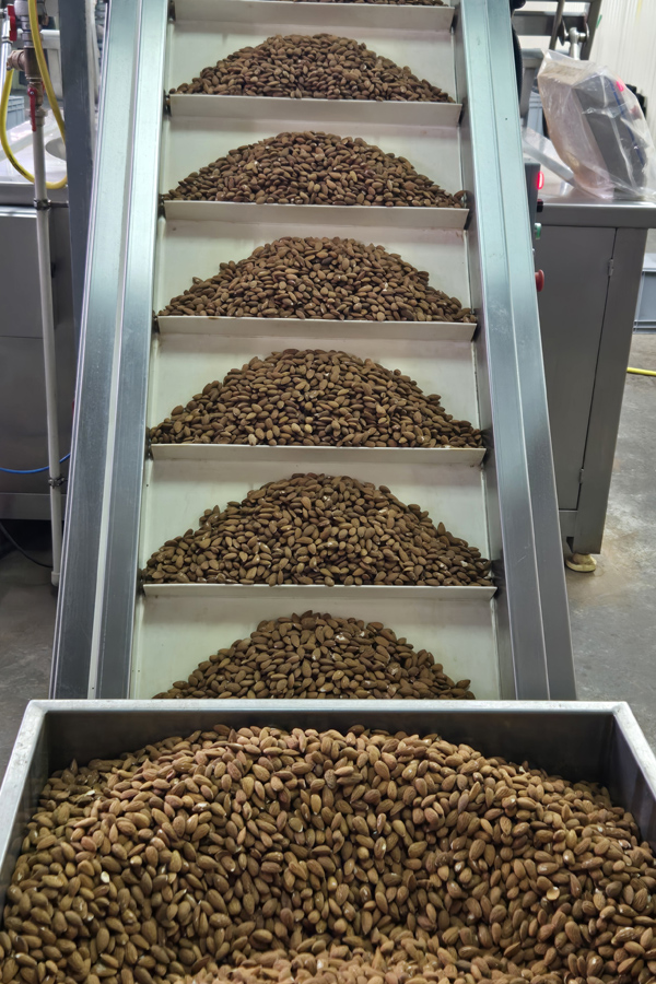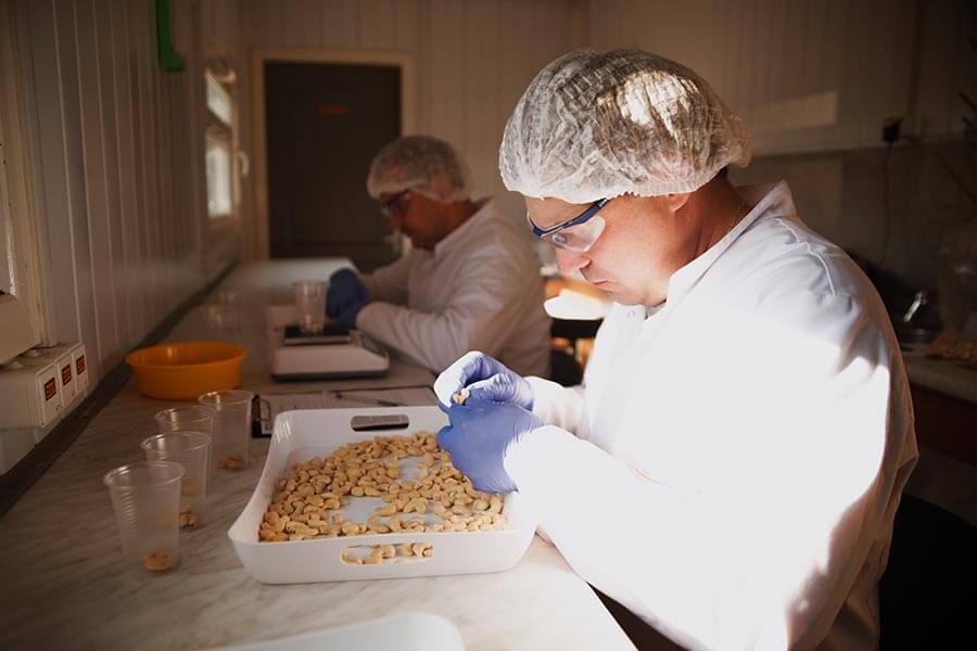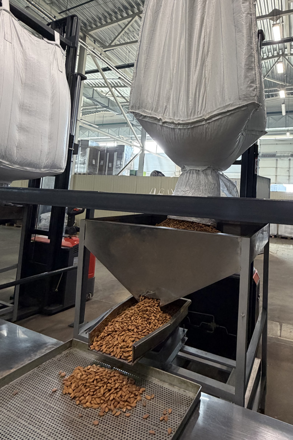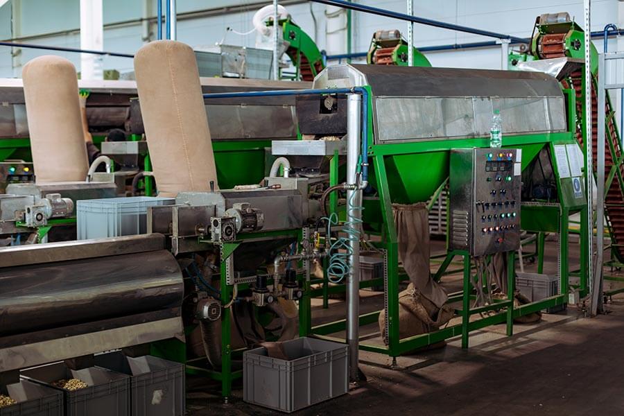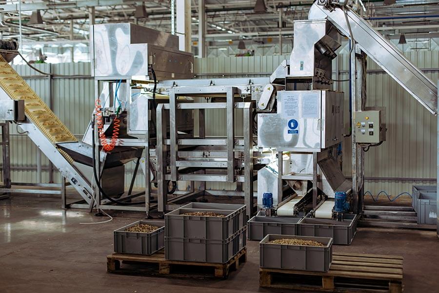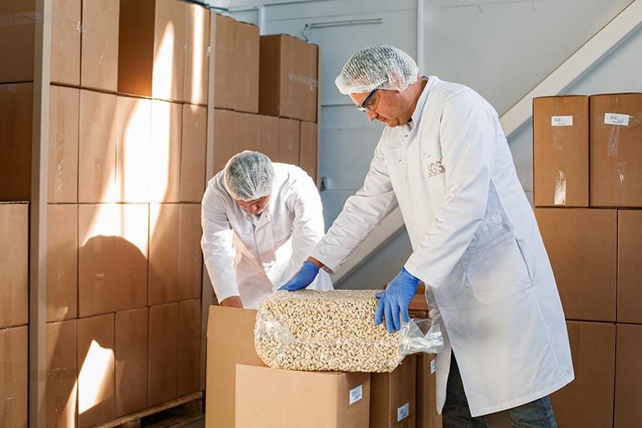 Сырьё проходит входной контроль: проверка влажности, целостности, отсутствия посторонних примесей. Орехи сортируются по размеру и качеству.